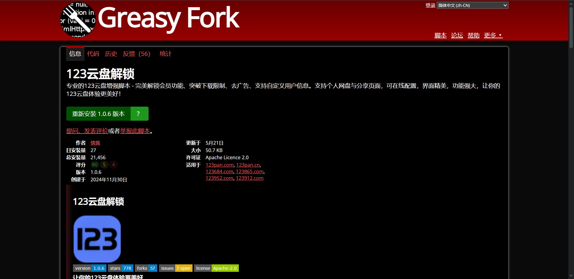 - 安装脚本,地址:https://greasyfork.org/zh-CN/scripts/519353-123%E4%BA%91%E7%9B%98%E8%A7%A3%E9%94%81