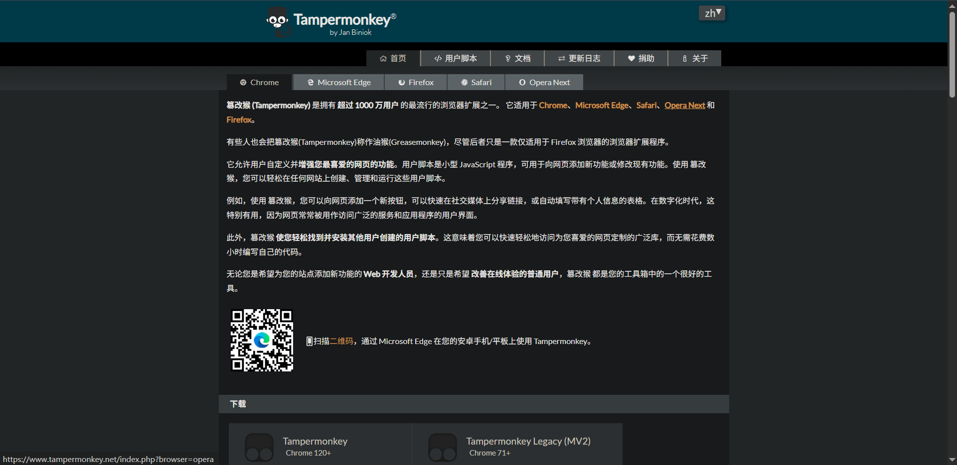 - 下载一个可用的浏览器,仅限于Chrome、Edge、Opera、Firefox浏览器,其他浏览器不行。