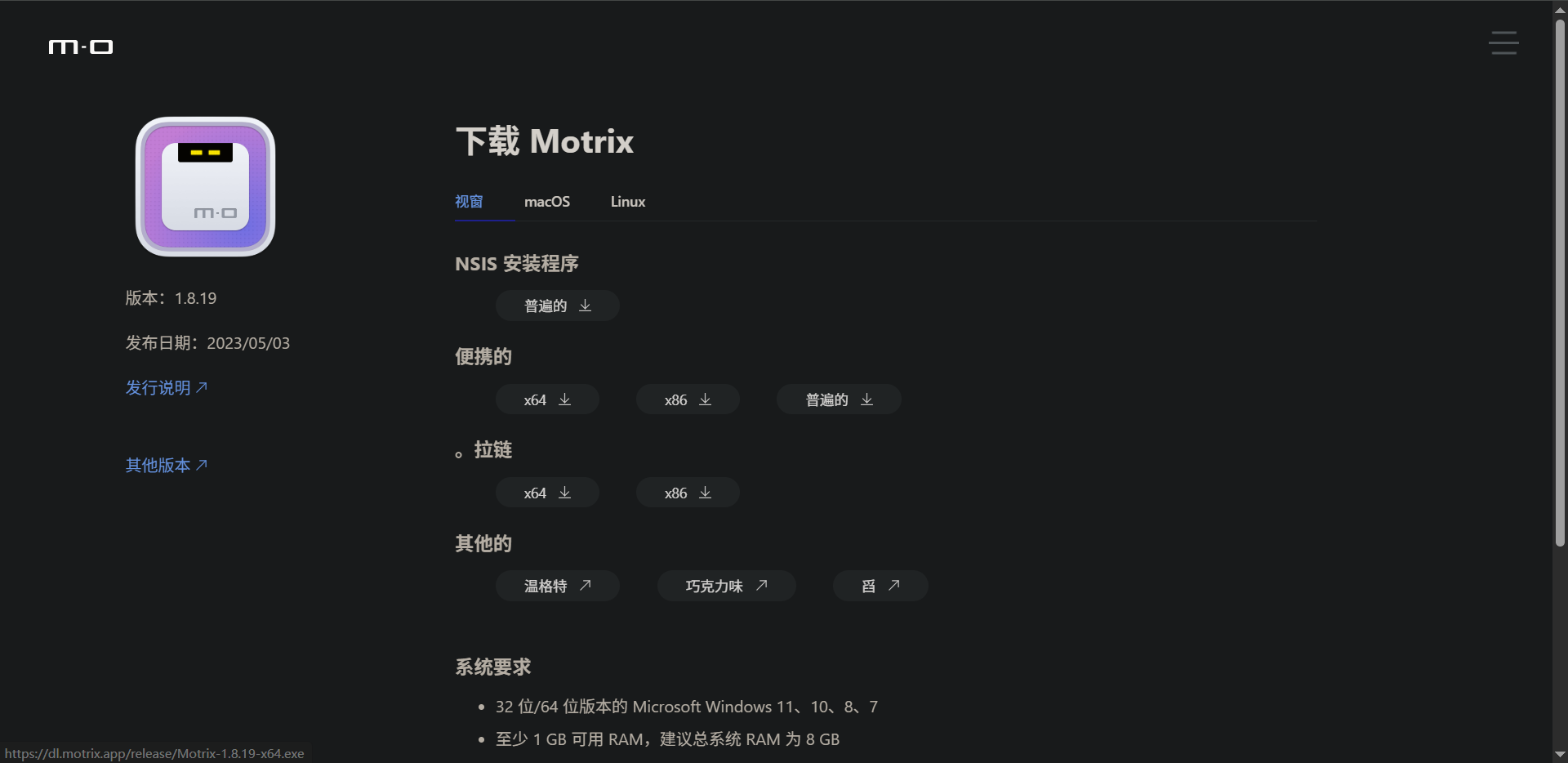 - 点击下载,下载合适的Motrix客户端,安装完成后打开。